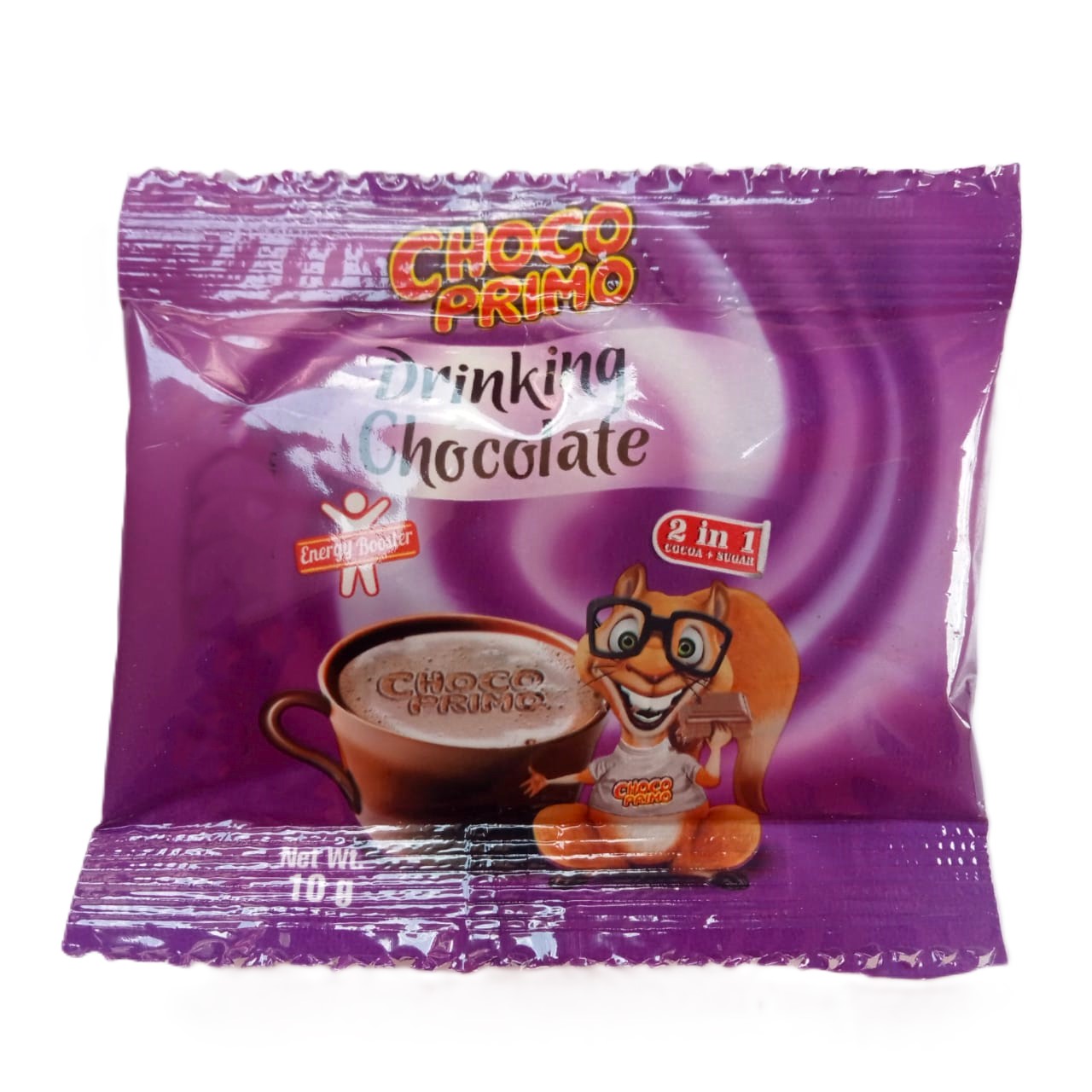 Choco Primo 2in1 Drinking Chocolate – 10g: A rich and creamy instant chocolate drink with milk powder included—perfect for a quick, comforting cup anytime, anywhere.