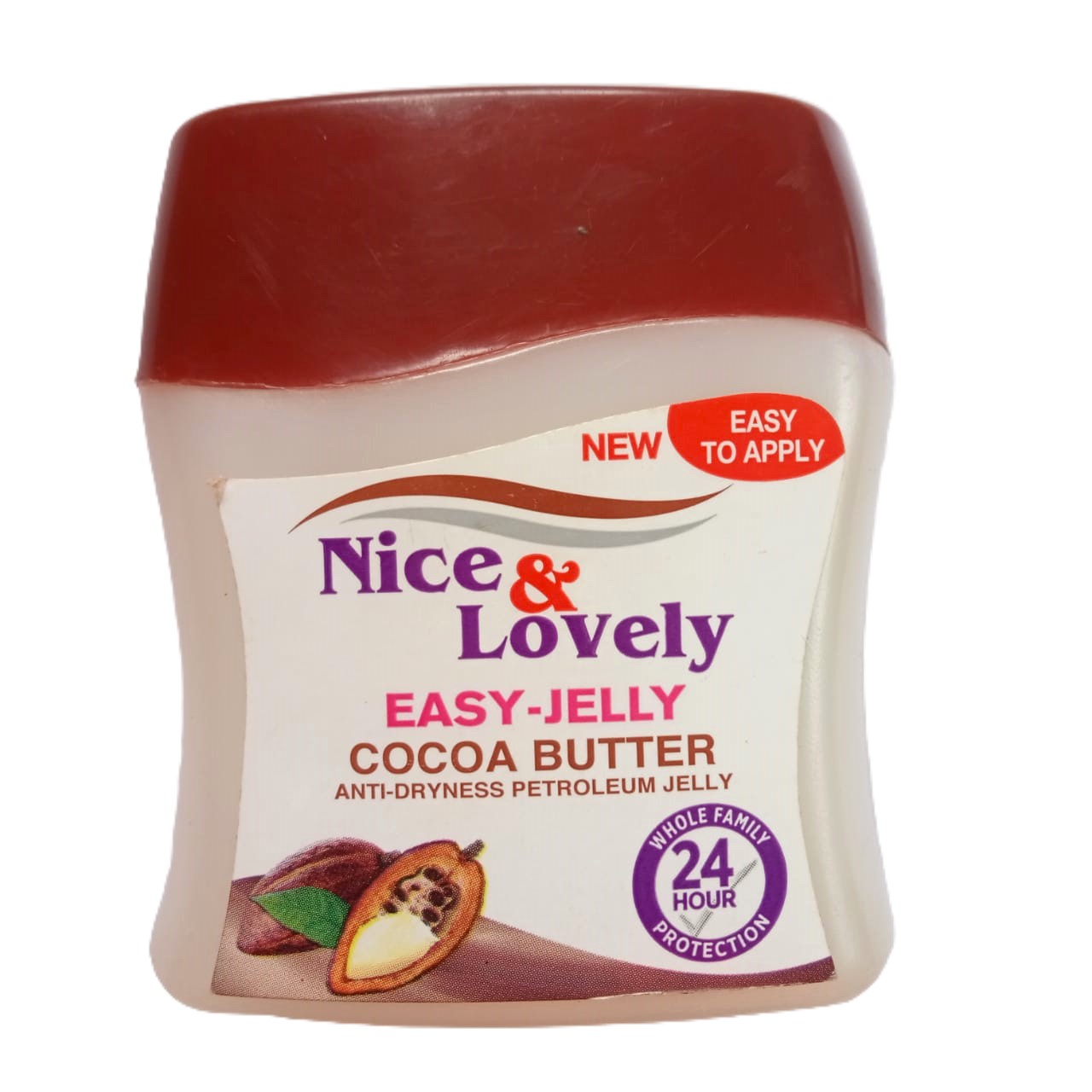 Nice & Lovely Cocoa Butter Petroleum Jelly – 100g: Deeply moisturizing jelly enriched with cocoa butter to nourish and protect dry skin, leaving it soft, smooth, and lightly scented.