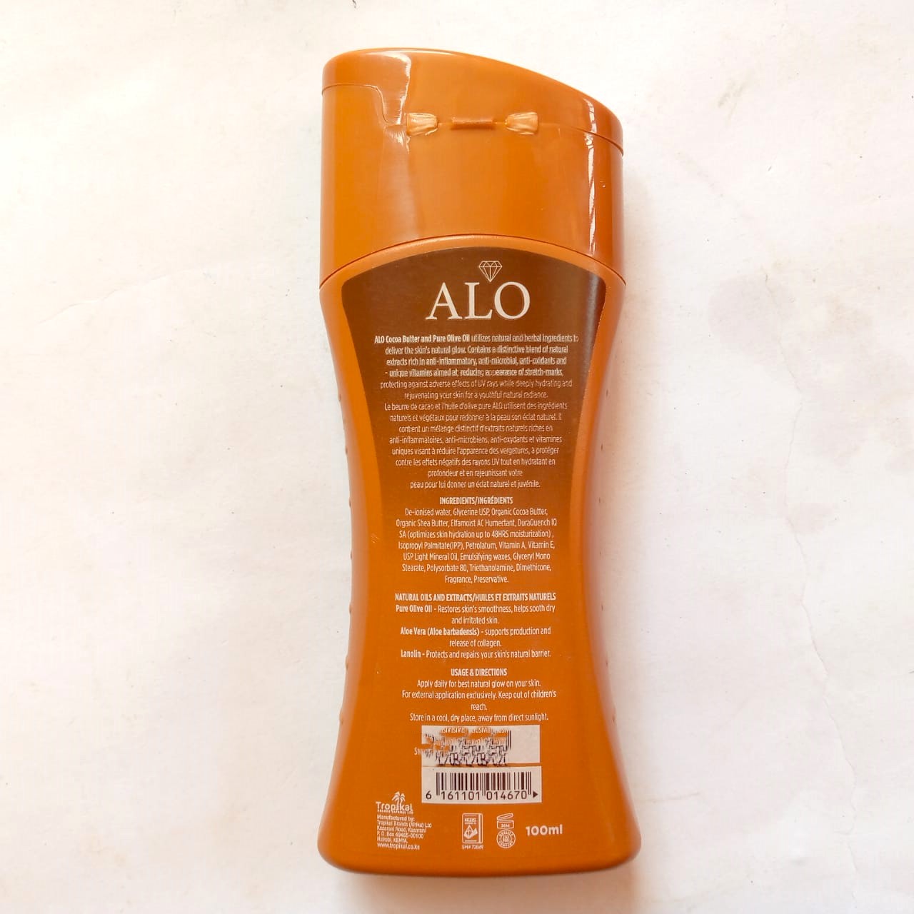 Treat your skin to rich hydration and natural care with ALO Cocoa Butter & Olive Oil Body Lotion – 100ml, available now at Beeston Delight Supermarket.