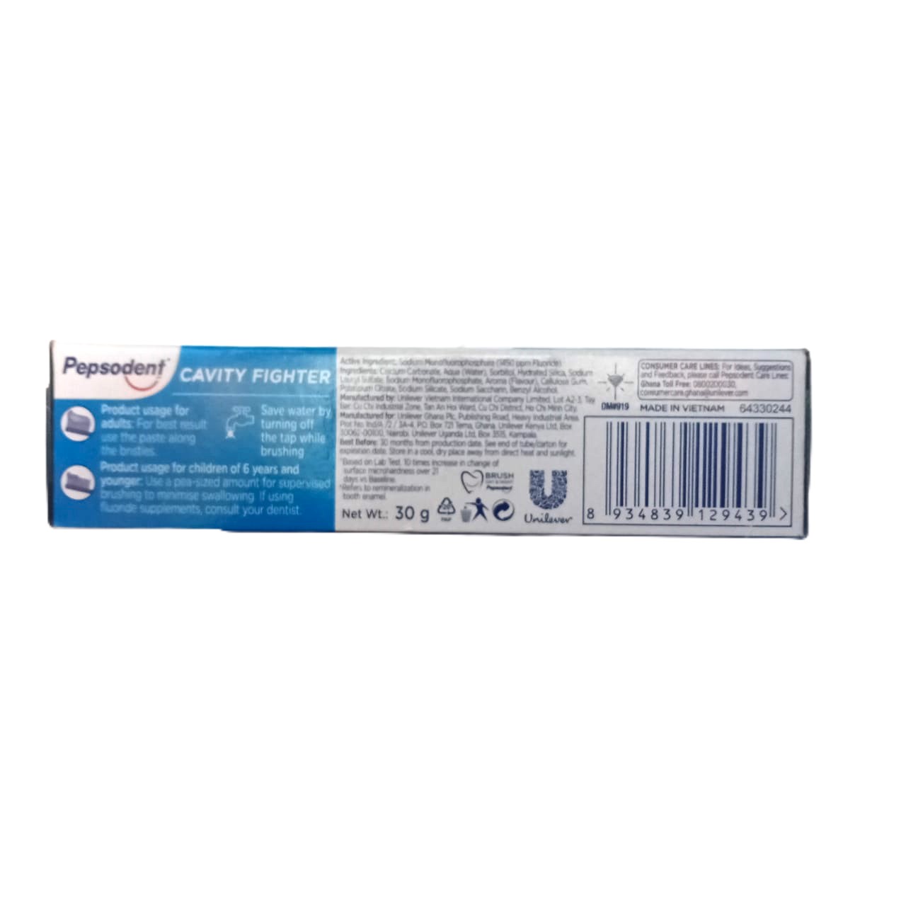 Pepsodent Cavity Fighter Toothpaste – 30g: Powerful cavity protection in a compact size—fights plaque, strengthens enamel, and leaves your breath fresh with every brush.