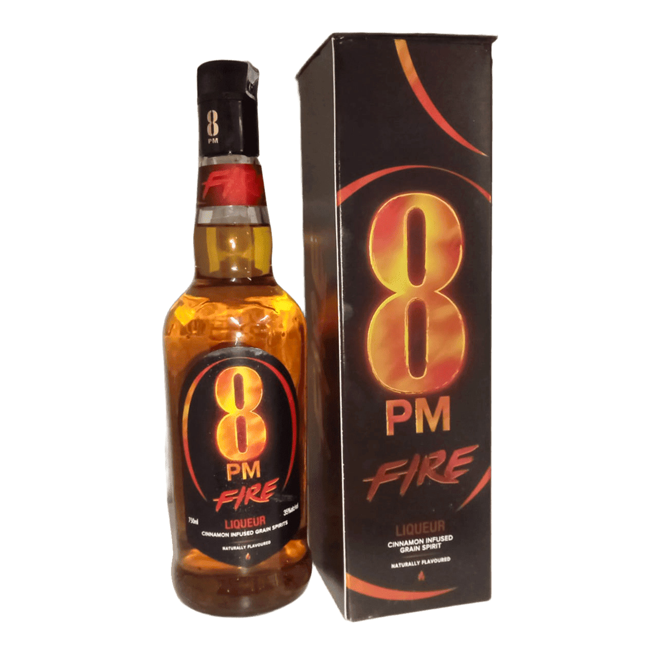 8PM Fire Liqueur – 750ml (35% ABV): A bold grain spirit infused with fiery cinnamon flavor—smooth, spicy and made for those who like their drinks with a kick.